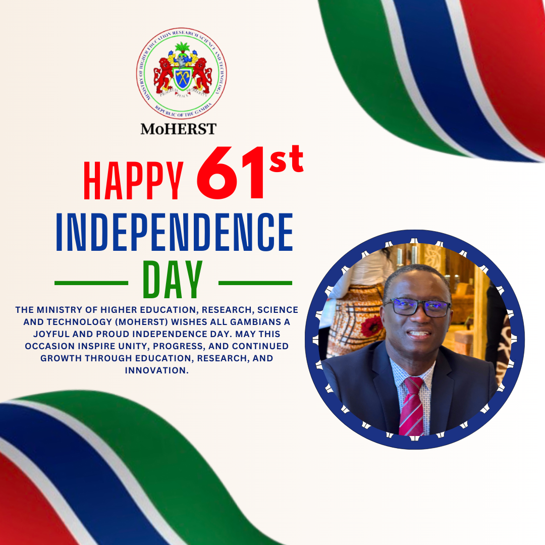 The Ministry of Higher Education, Research, Science and Technology (MoHERST) conveys its sincere congratulations and best wishes to all Gambians on the celebration of Independence Day.