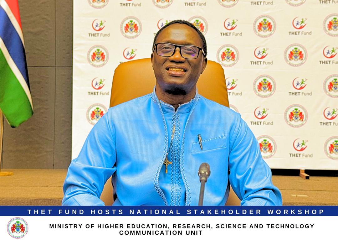 The Honourable Minister of Higher Education, Research, Science and Technology (MOHERST), Professor Pierre Gomez, today delivered a keynote address at the National Stakeholder Engagement and Requirements Gathering Workshop for the Tertiary and Higher Education Trust Fund (THET Fund) under the theme, “Co-Creating Workforce-Ready Graduates for The Gambia.”