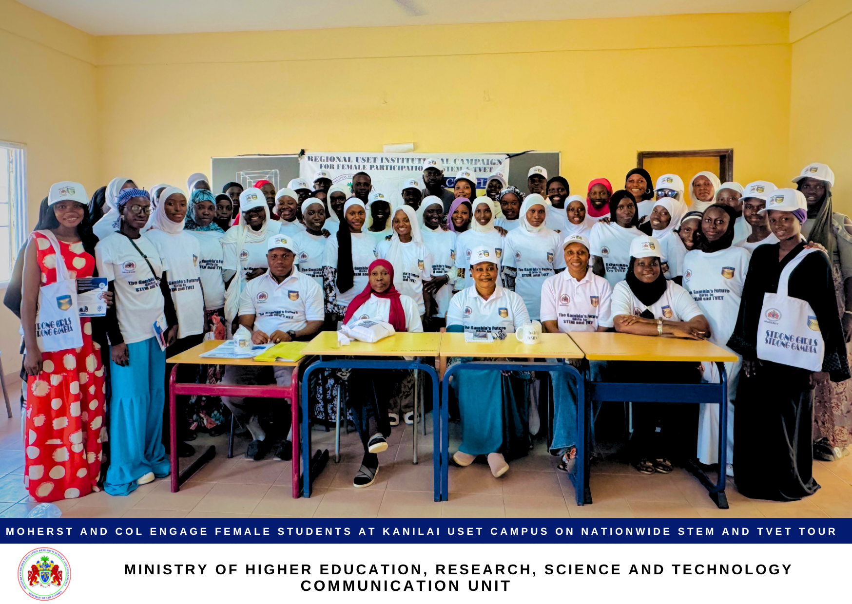 Continuing from Julangel, the nationwide tour by the Ministry of Higher Education, Research, Science and Technology (MoHERST), in partnership with the Commonwealth of Learning (COL), progressed to the Kanilai USET campus on Day 3. Led by the Gender Focal Point, Ms. Kumba Jammeh, alongside a delegation of education stakeholders, the team engaged with 39 female students.