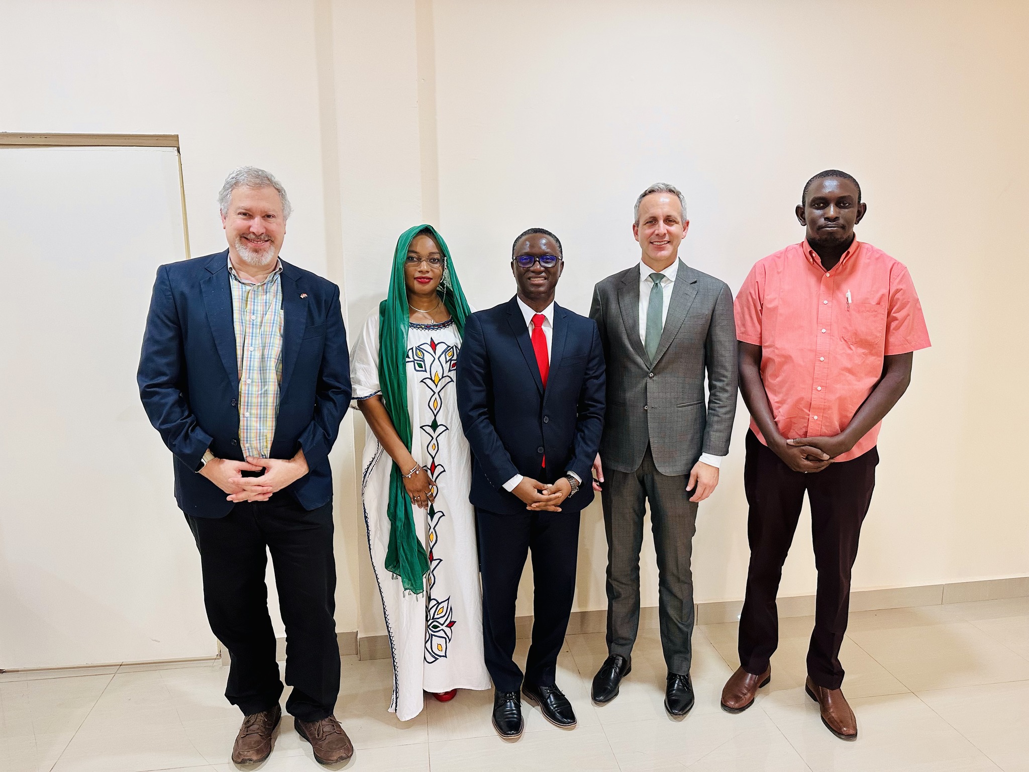 Hon. Minister Prof. Pierre Gomez today welcomed Mr. Robert Anderson, Chargé d’Affaires of the U.S. Embassy in The Gambia, and Mr. Andrew Posner, Public Diplomacy Officer, for a high-level discussion on strengthening cooperation in higher education and skills development.