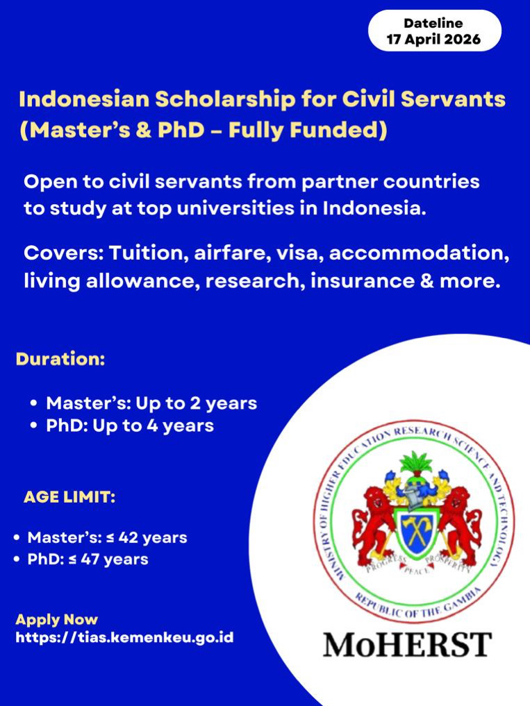 This scholarship is open to civil servants or nominated government officials from selected partner countries. The selection process is highly competitive, offering successful candidates the opportunity to pursue diverse study programs at leading universities and polytechnics in Indonesia.